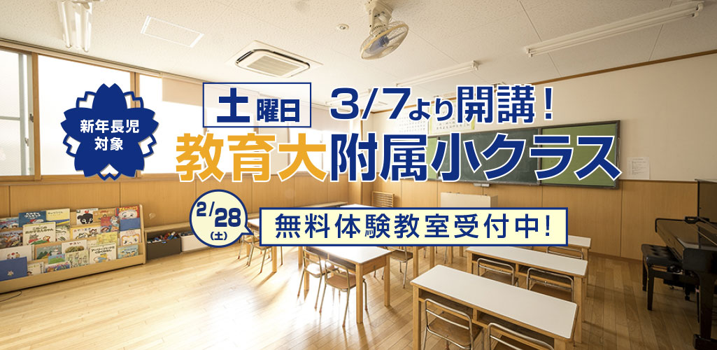 4月から年少児になる方を対象とした春期講習です。「新3歳児クラス」と「新3歳児ハイレベル洛南クラス」を設けています。これら2クラスは時間帯が異なりますので、両方受講していただくこともできます。どうぞ奮ってご参加ください。