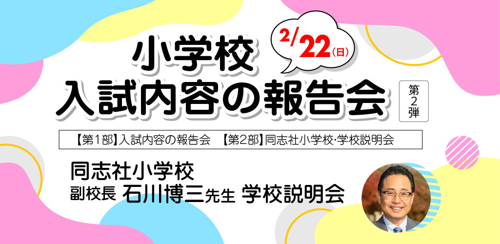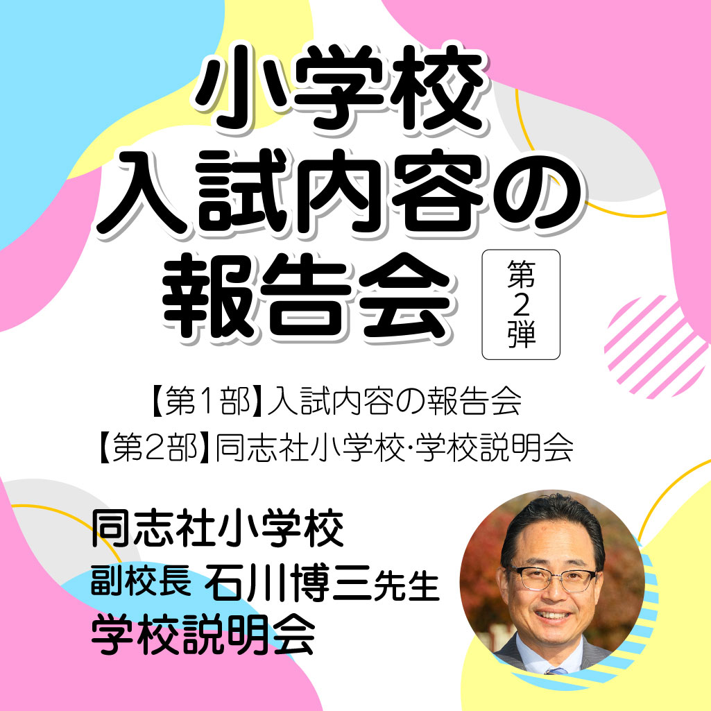 同志社小・京都女子大学附属小・京都教育大学附属京都小の入試報告会/同志社小学校 副校長 石川博三先生をお招きしての学校説明会を開催いたします。